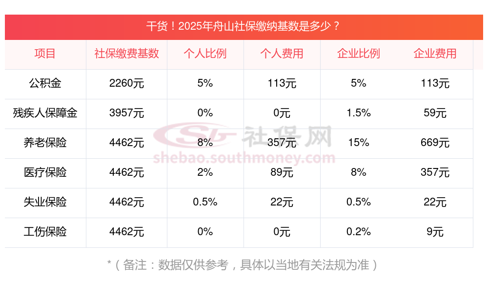 据新社通小编了解到,社保缴费基数的确定主要依据职工上一年度的月平均工资,并结合当地社会平均工资的上下限(60%-300%)进行调整。 目前,舟山社保缴费基数为:4462.00,个人费用约为:356.96元,企业费用约为:669.3元。