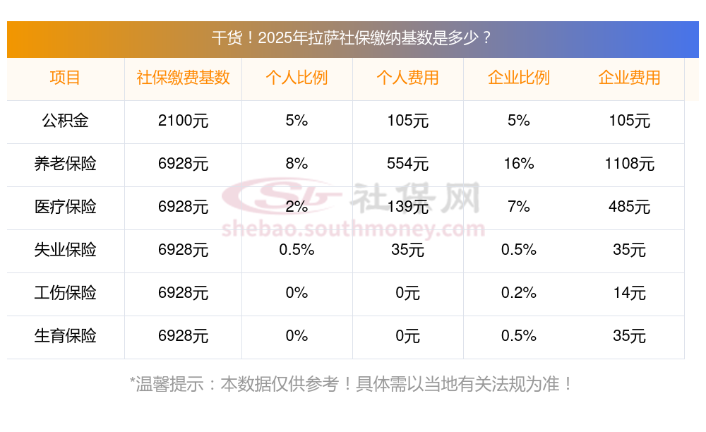 社保基数由职工上一年度1月至12月所有工资性收入所得的月平均额确定,确定后的基数被用于计算缴纳社会保险费的工资基数。那么,拉萨个人缴纳社保每月要多少钱?2024-2025年拉萨社保缴费基数最新标准公布,下面随新社通app小编一起来了解具体内容。