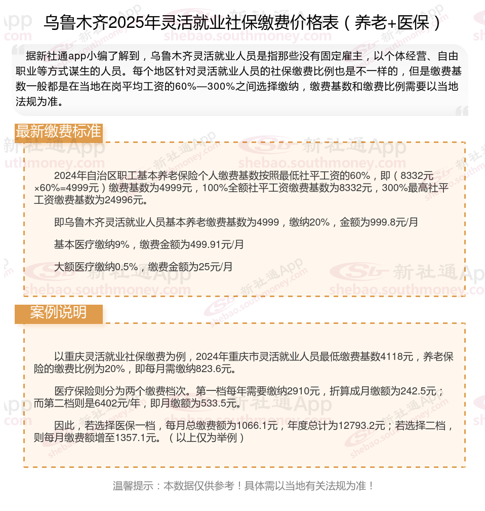 二、乌鲁木齐2024年灵活就业社保缴费基数及比例最新消息