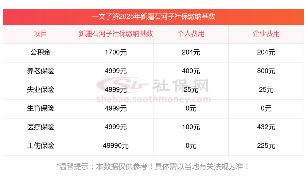 据新社通app显示,新疆石河子社保缴费基数标准2025年,(社保最低一个月要交多少钱)新疆石河子社保费用如下: