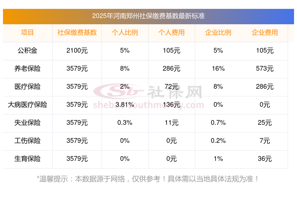 一、据新社通小编了解到,职工上一年度月平均工资作为社保缴费基数确定的关键参考,之后依据当地社会平均工资60%-300%的上下限来实施调整。 目前,河南郑州社保缴费基数为:3579.00,个人费用约为:286.32元,企业费用约为:572.64元。