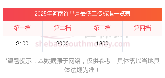 河南许昌最低工资标准参考最新如下: