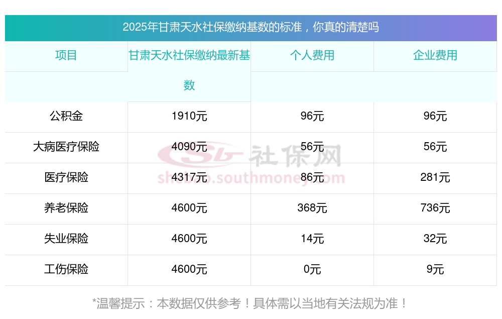 一、甘肃天水2025年职工和公司社保各交多少钱甘肃天水职工社保缴费多少钱一个月