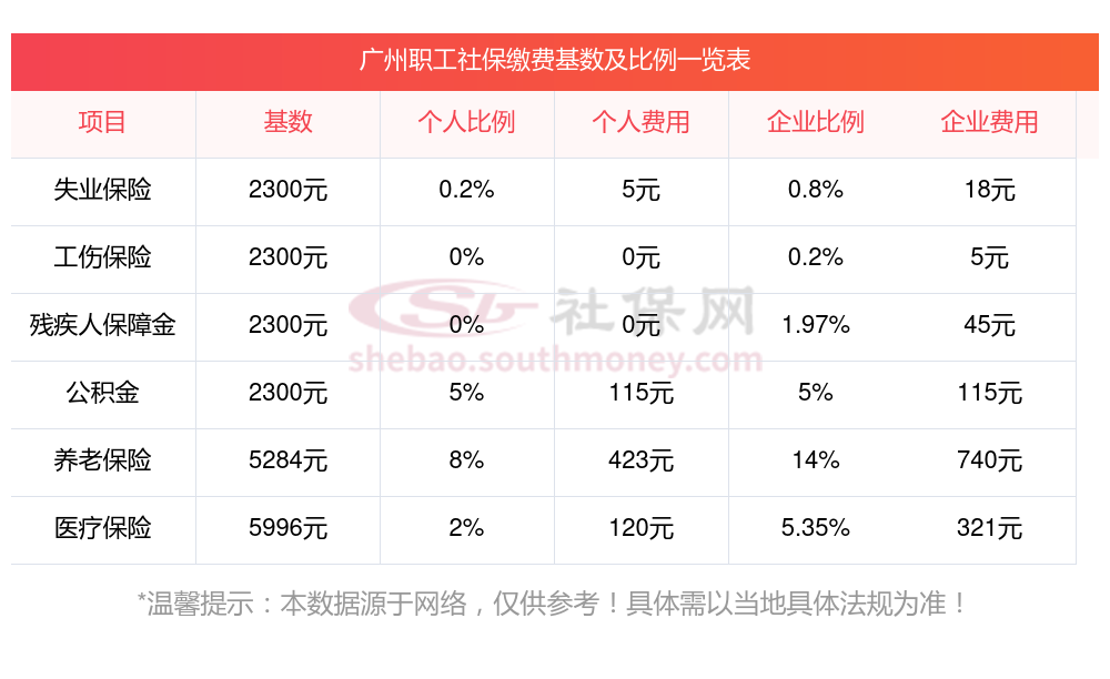 二、广州职工社保缴费基数是多少钱一个月?2025年职工社保缴纳标准是多少?