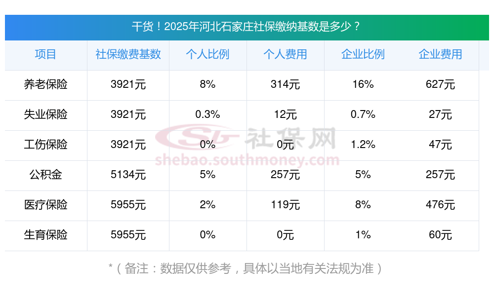 把职工上一年度1月至12月的所有工资性收入所得进行月平均,所得的月平均额用来确定社保基数,该基数用于计算社保费缴纳的工资基数。那么,2025年河北石家庄社保缴费标准表,下面随新社通app小编一起来了解具体内容。