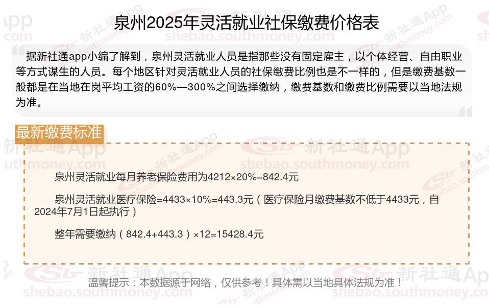 灵活就业,作为一种非传统的就业方式,近年来蓬勃发展。那么2025年泉州灵活就业人员社保需要交多少钱?下面随新社通小编一起来看看。