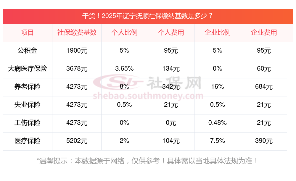 一、据新社通小编了解到,职工上一年度月平均工资作为社保缴费基数确定的关键参考,之后依据当地社会平均工资60%-300%的上下限来实施调整。 目前,辽宁抚顺社保缴费基数为:4273.00,个人费用约为:341.84元,企业费用约为:683.68元。