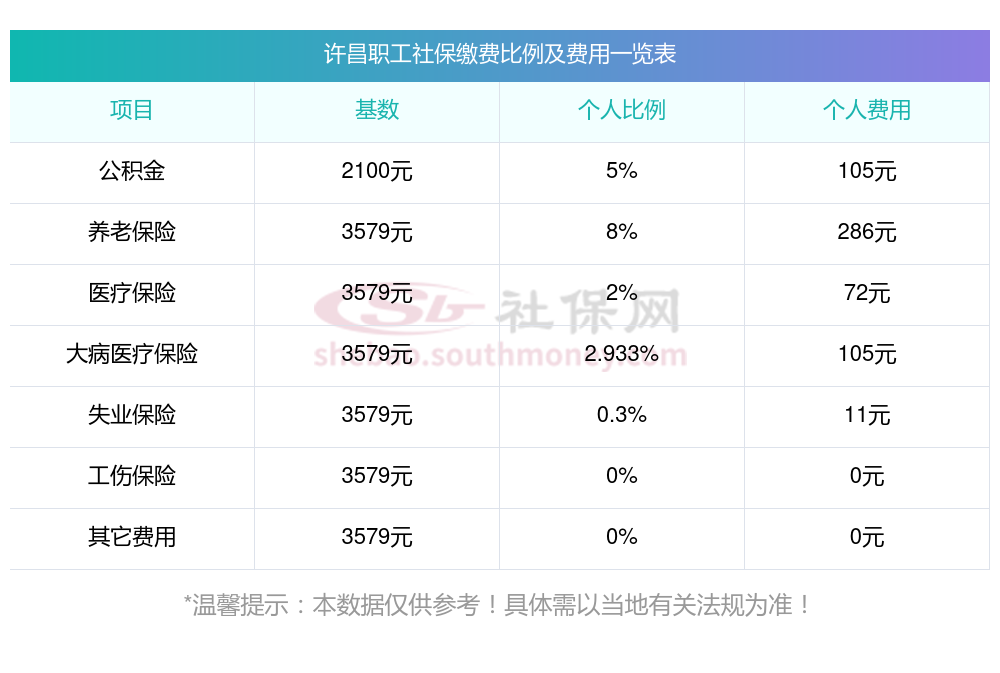 2025年许昌社保缴费价格标准是多少,2025年许昌社保缴费多少钱?下表是2025年许昌社保费用明细参考,新社通app-社保缴费查询工具提供的最新数据如下: