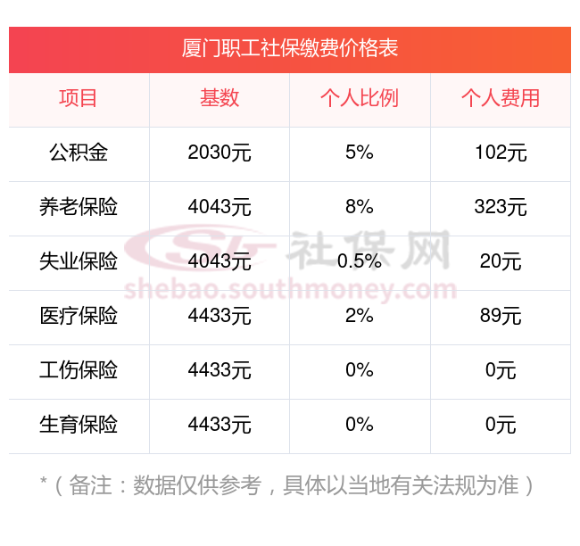 二、2025年厦门职工社保缴费基数是多少钱一个月?职工社保缴纳标准是多少?