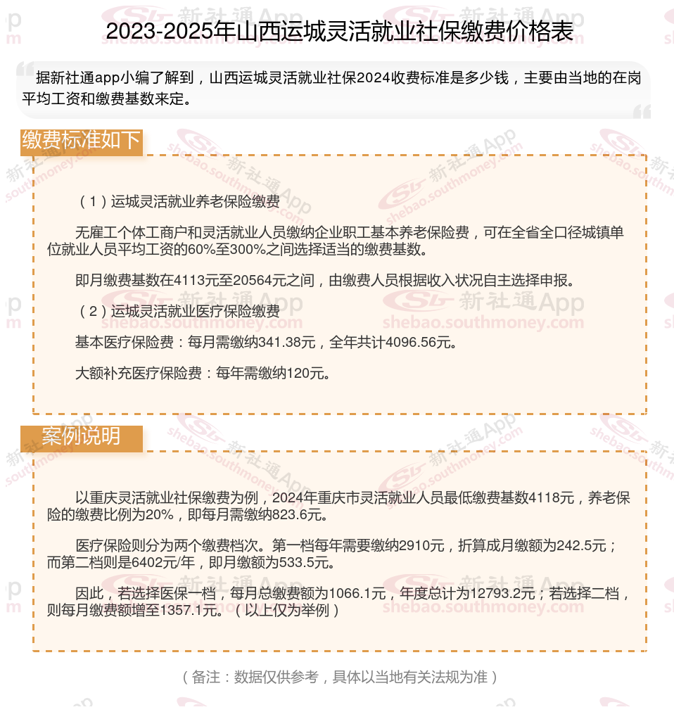 据新社通app显示,2024-2025年山西运城灵活就业养老保险的缴费标准:
