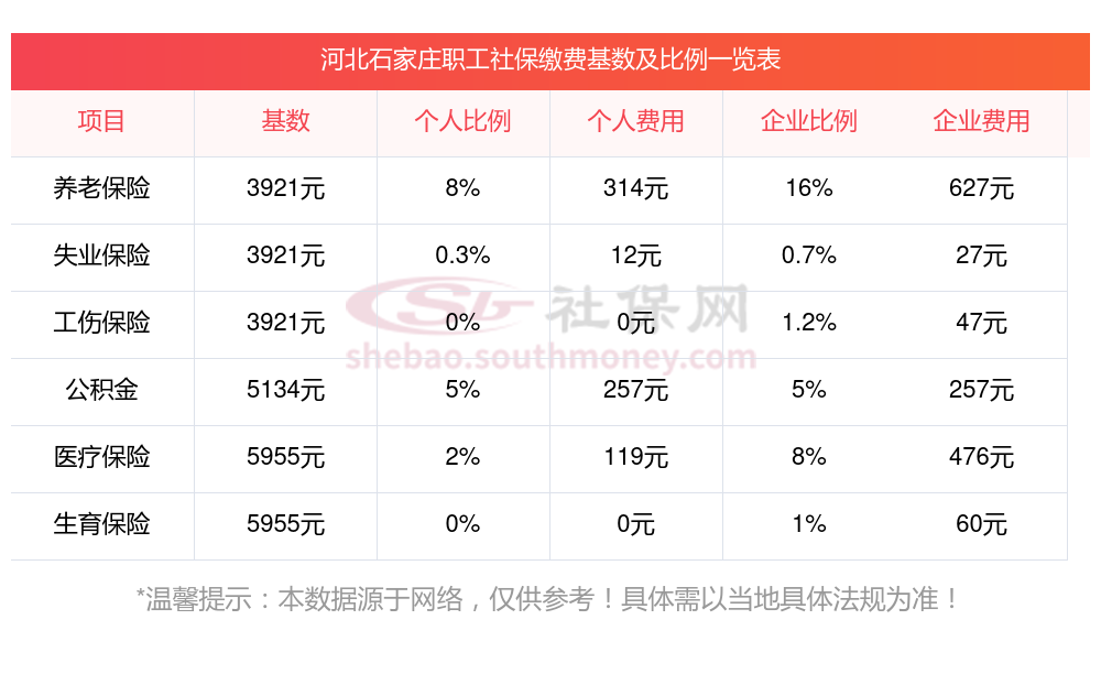 二、2025年河北石家庄职工社保缴费基数是多少钱一个月?职工社保缴纳标准是多少?