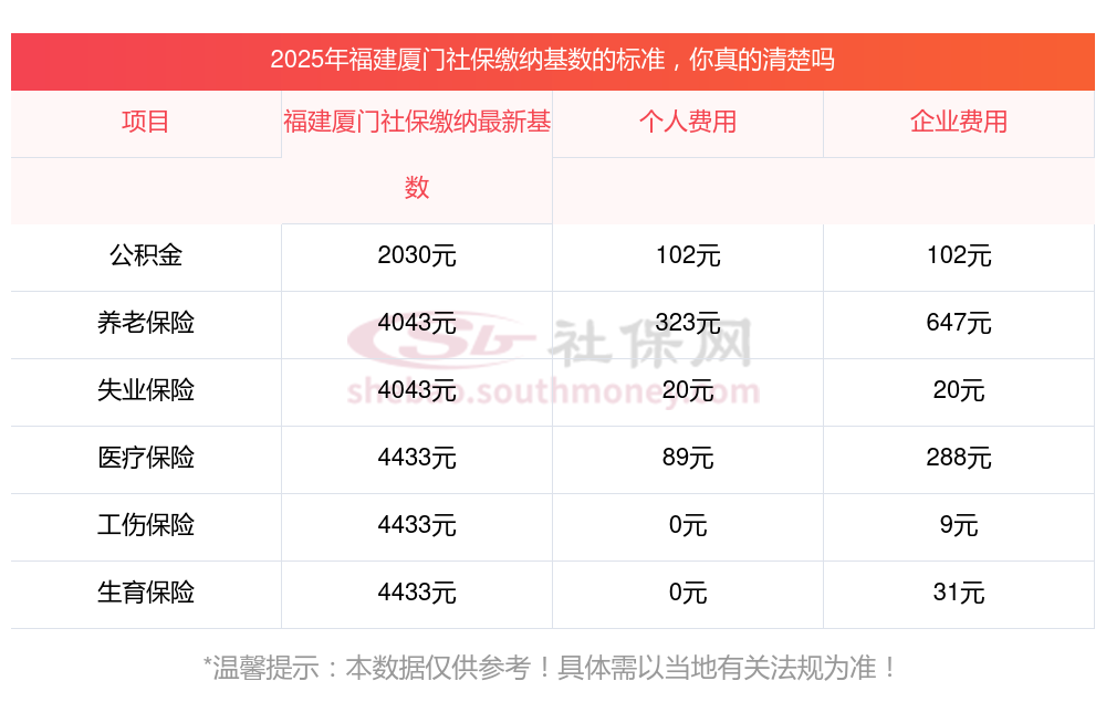 和社保网一起来了解下:福建厦门社保缴费比例是多少?2024-2025年福建厦门社保费用明细参考,新社通app-社保缴费查询工具提供的最新数据如下: