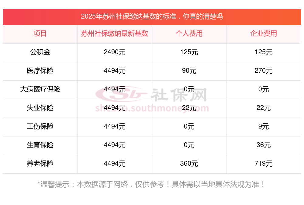 一、据新社通小编了解到,社保缴费基数的确定主要依据职工上一年度的月平均工资,并结合当地社会平均工资的上下限(60%-300%)进行调整。 目前,苏州社保缴费基数为:4494.00,个人费用约为:89.88元,企业费用约为:269.64元。