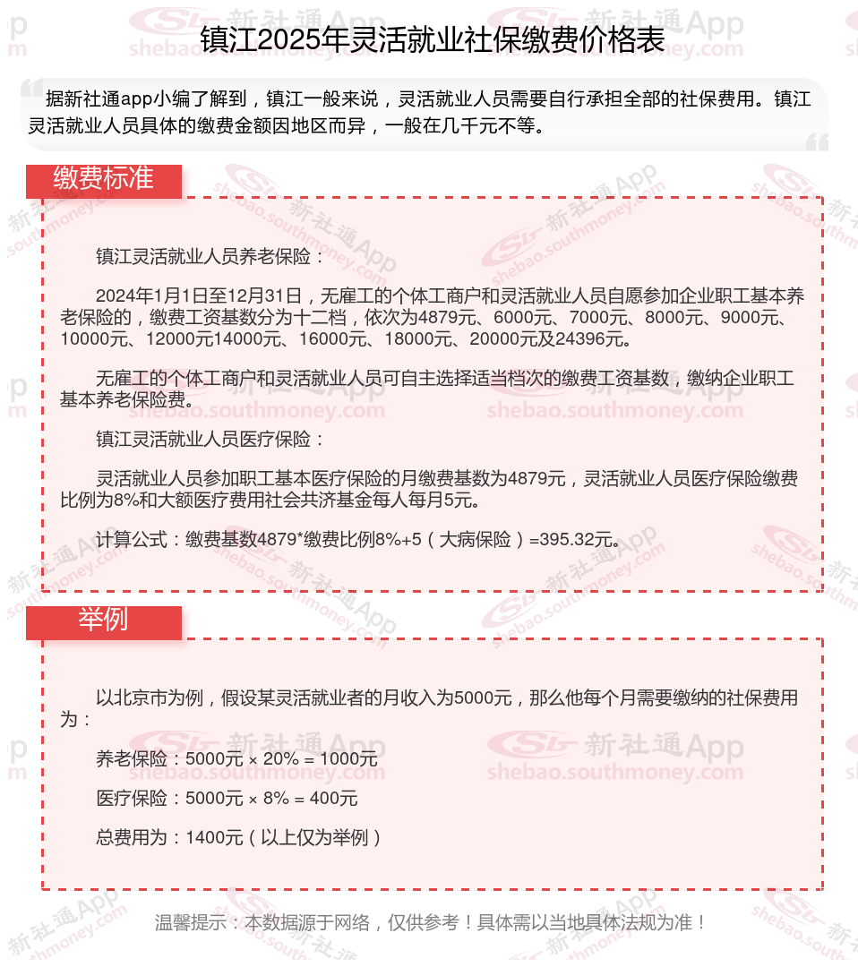 据新社通app数据显示,镇江灵活就业养老保险的缴费基数为:4494元。灵活就业人员参保缴费的比例为个人20%。