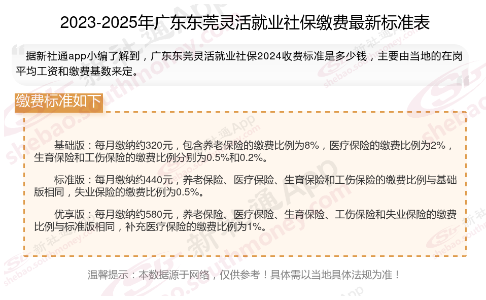 据新社通app数据显示,广东东莞灵活就业养老保险最低缴费基数为:4546元;个人的缴费比例分别为:20%;