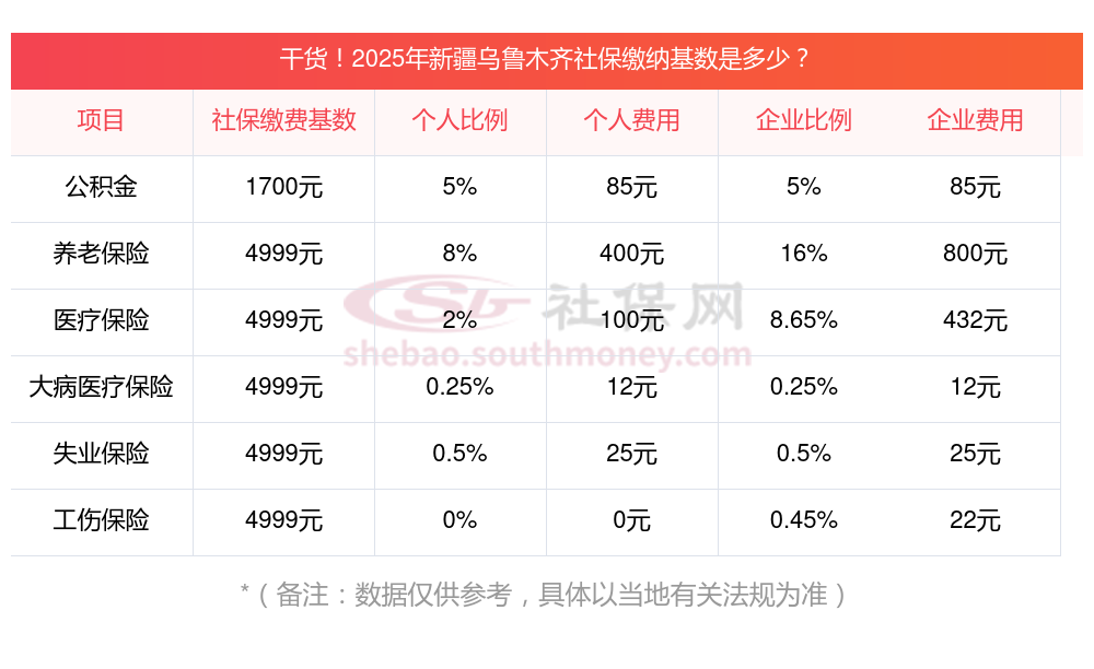 2025年新疆乌鲁木齐社保缴费标准个人交多少呢?据新社通app-查阅了解到,社保基数由职工上一年度1月至12月所有工资性收入所得的月平均额确定,确定后的基数被用于计算缴纳社会保险费的工资基数。 目前该新疆乌鲁木齐社保的缴费基数为:4999.00,个人费用约为:399.92元,企业费用约为:799.84元。