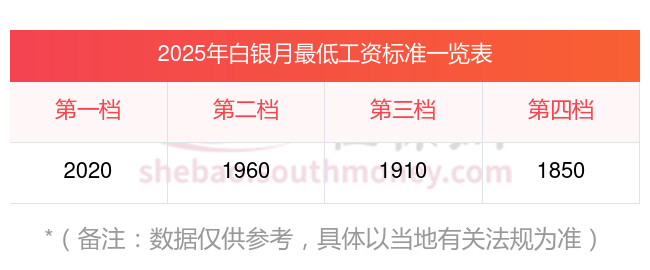 白银最低工资标准参考最新如下: