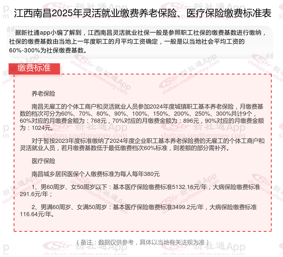 江西南昌2025年灵活就业人员社保缴费标准公布