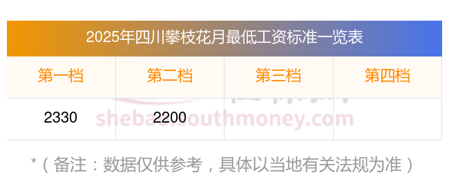 四川攀枝花最低工资标准是多少?四川攀枝花最低工资标准如下: