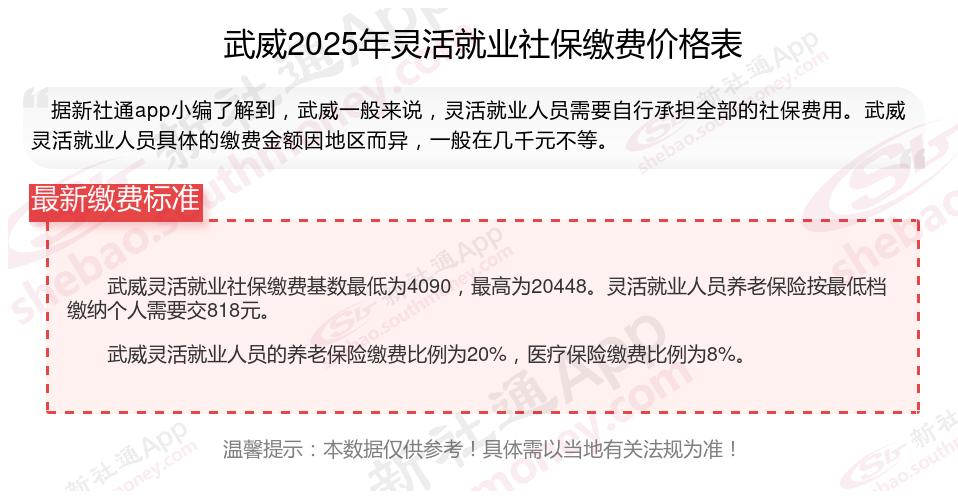 灵活就业,作为一种非传统的就业方式,近年来蓬勃发展。那么2025年武威灵活就业人员社保需要交多少钱?下面随新社通小编一起来看看。