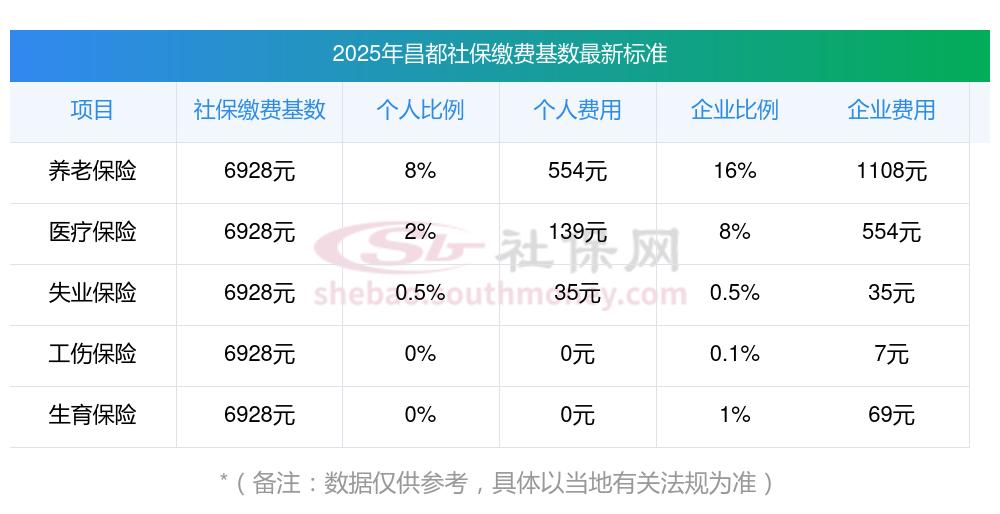 一、据新社通app-查阅了解到,职工上一年度1月至12月的全部工资性收入所得的月平均额,会被用来确定社保基数,而该基数用于计算社会保险费缴纳的工资基数。 目前该昌都社保的缴费基数为:6927.60,个人费用约为:554.208元,企业费用约为:1108.416元。