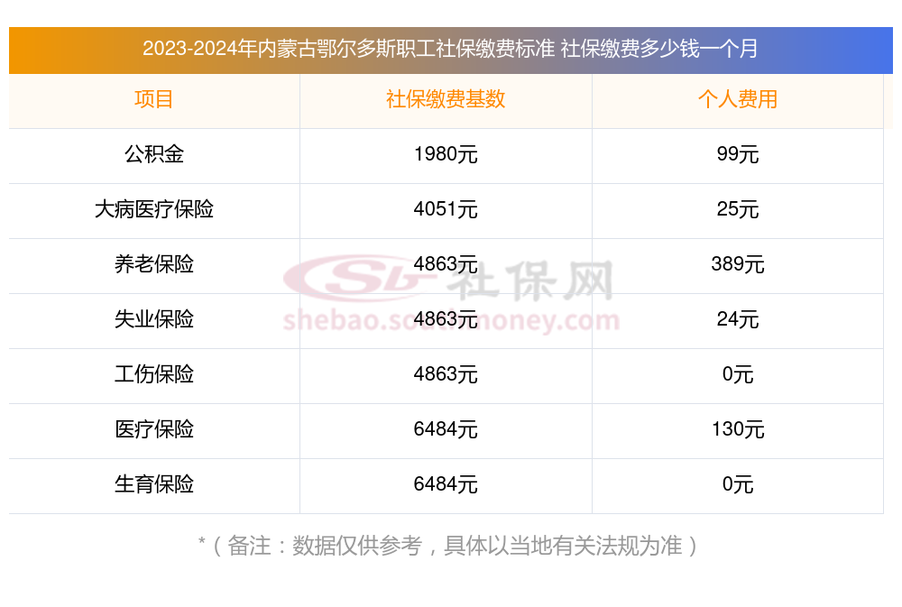内蒙古鄂尔多斯社保费用个人和公司的承担比例如下: