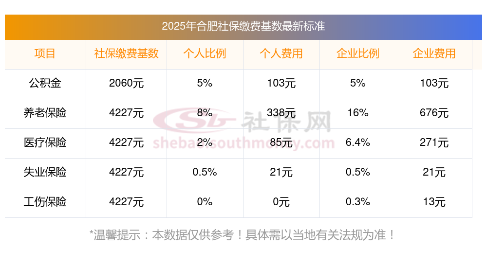 一、据新社通小编了解到,社保缴费基数的确定主要依据职工上一年度的月平均工资,并结合当地社会平均工资的上下限(60%-300%)进行调整。 目前,合肥社保缴费基数为:4227.00,个人费用约为:338.16元,企业费用约为:676.32元。