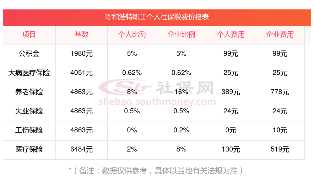 呼和浩特社保一个月交多少钱,个人可以缴纳社保吗??下面和新社君一起来看看呼和浩特最低标准社保费用明细参考,新社通app-社保缴费查询工具提供的最新数据如下: