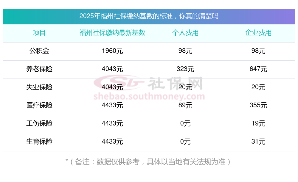 福州职工社保缴费基数是多少,2025年福州社保缴费最新标准参照如下:
