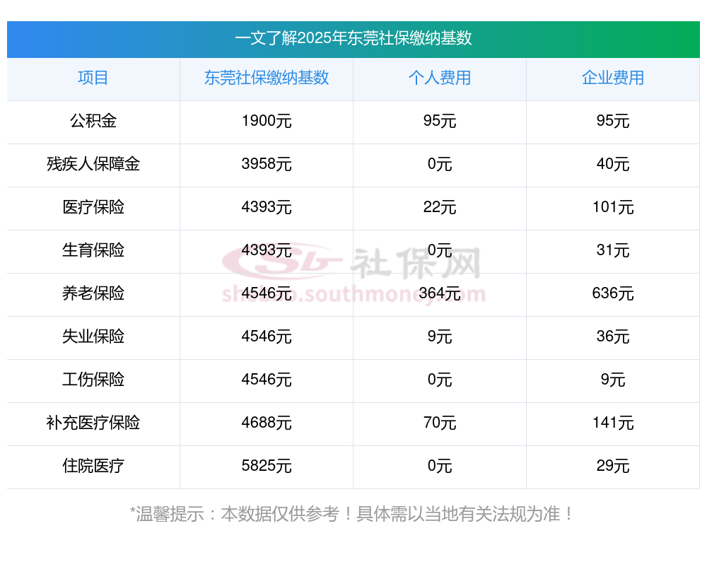 (1)据新社通app-查阅了解到,确定社保基数要依据职工上一年度1月至12月的所有工资性收入所得的月平均额,此基数用于计算缴纳社会保险费的工资基数。 目前该东莞社保的缴费基数为:4546.00,个人费用约为:363.68元,企业费用约为:636.44元。