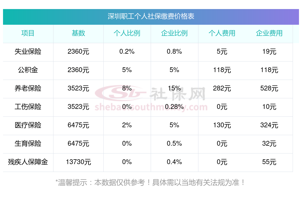 二、2025年深圳职工社保缴费基数是多少钱一个月?职工社保缴纳标准是多少?