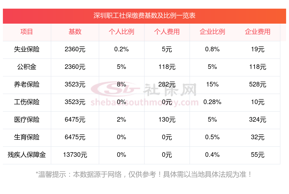 二、2025年深圳职工社保缴费基数是多少钱一个月?职工社保缴纳标准最新是多少?