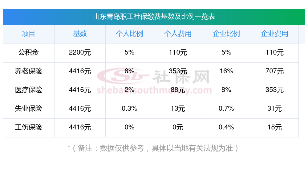 山东青岛缴费社保比例一览 社保公司和个人各交多少?下表是2024-2025年山东青岛社保费用明细参考,新社通app-社保缴费查询工具提供的最新数据如下: