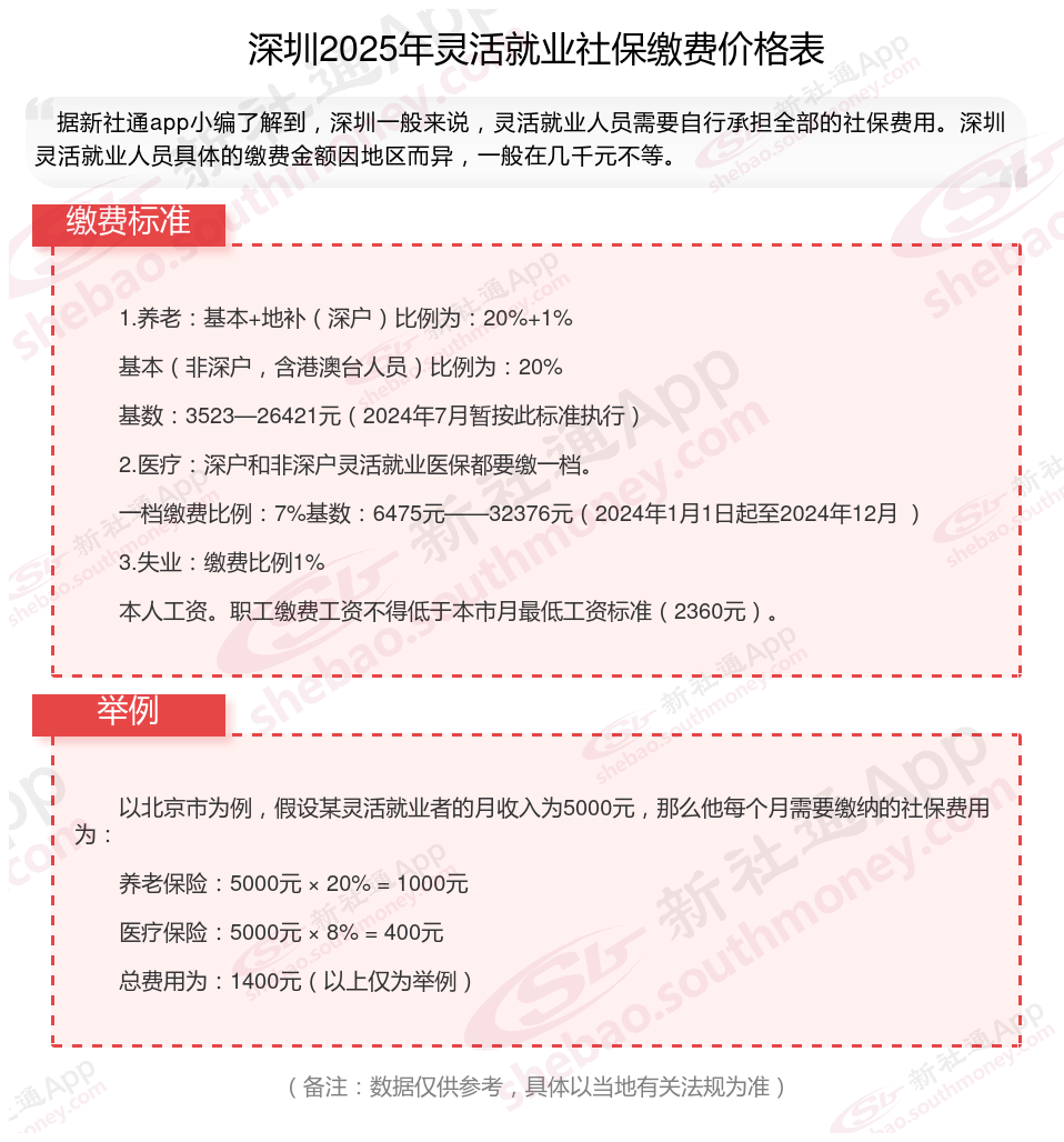 2024-2025年灵活就业社保养老、医保缴费标准一览表,深圳灵活就业社保每月交多少钱?