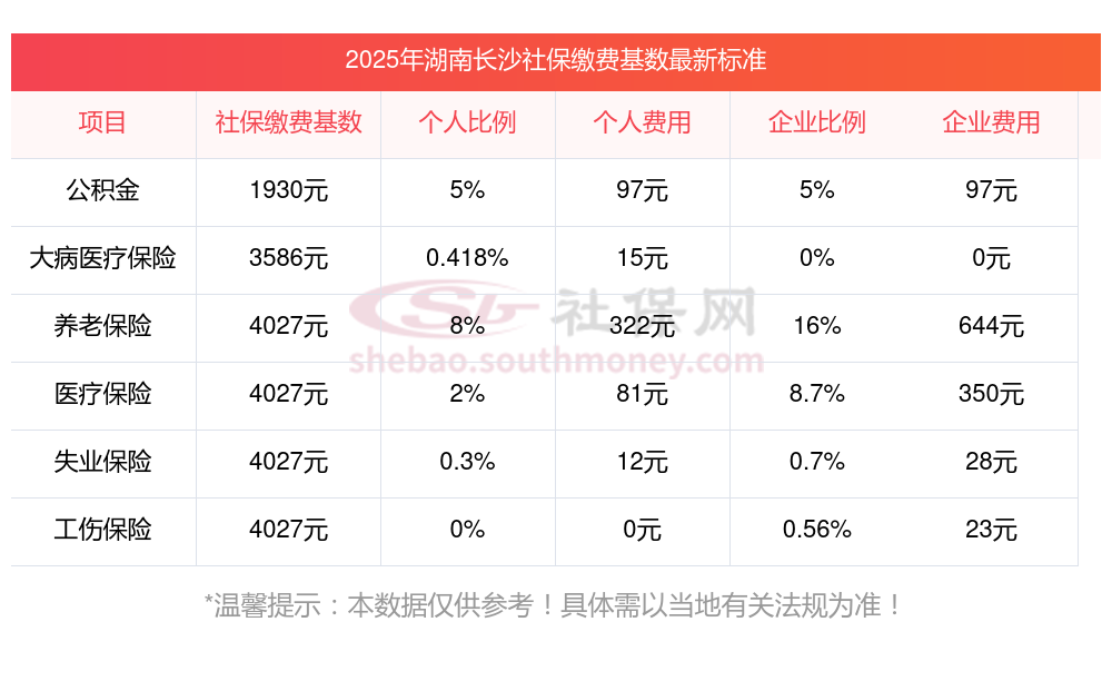 据新社通小编了解到,确定社保缴费基数,主要以上一年度职工的月平均工资为基准,同时结合当地社会平均工资60%至300%的上下限标准进行相应调整。 目前,湖南长沙社保缴费基数为:4027.00,个人费用约为:322.16元,企业费用约为:644.32元。