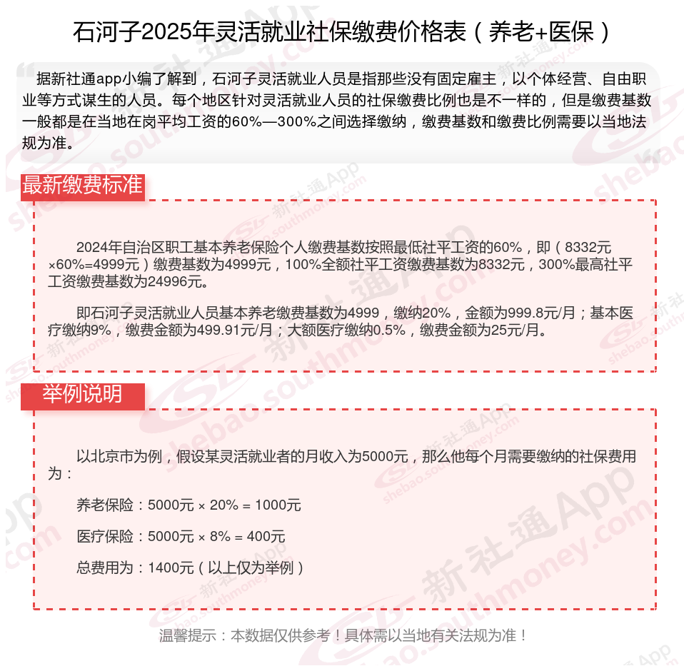 2025年灵活就业养老社保缴费标准是多少钱一个月?石河子灵活就业社保每月交多少钱?
