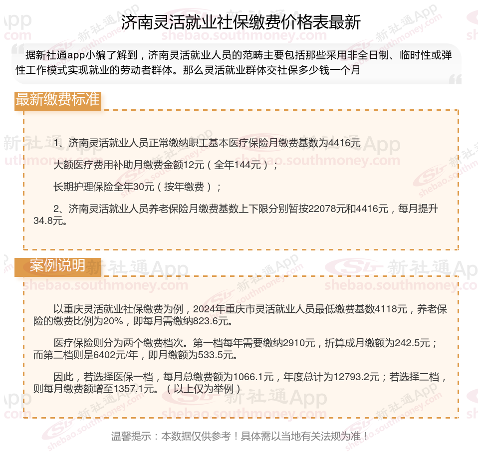2024-2025年灵活就业社保养老、医保缴费标准一览表,济南灵活就业社保每月交多少钱?
