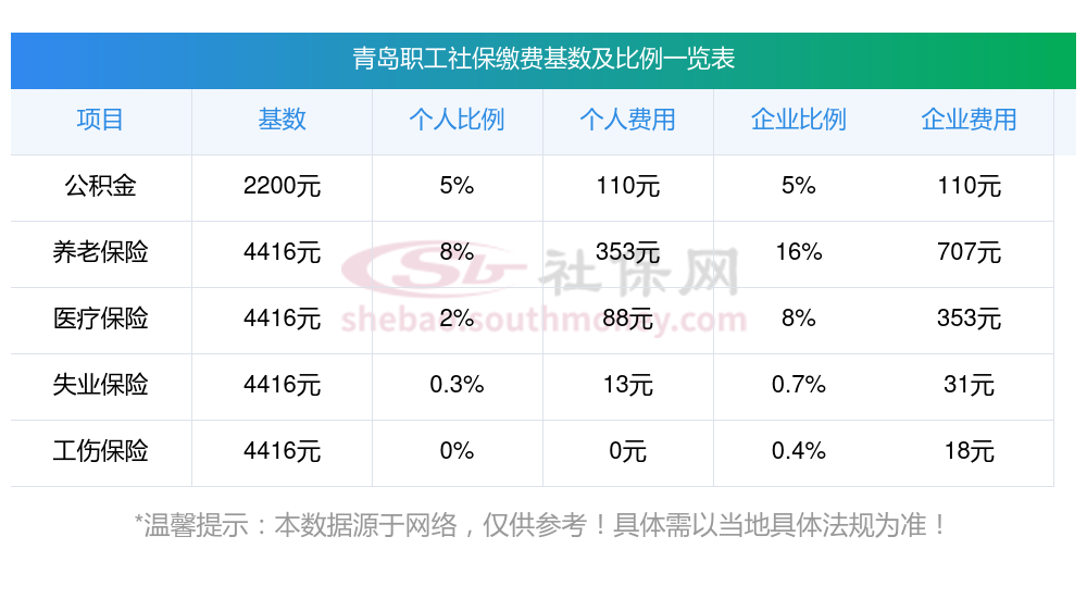 2025年青岛社保缴费多少钱?下表是2024-2025年青岛社保费用明细参考,新社通app-社保缴费查询工具提供的最新数据如下: