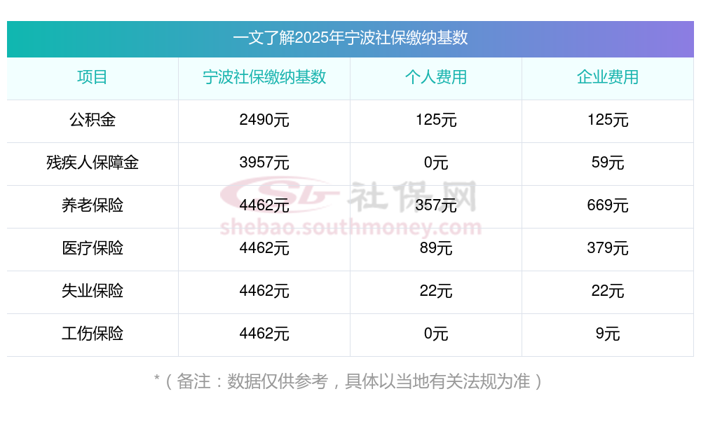 一、据新社通小编了解到,社保缴费基数的确定,以职工上一年度月平均工资为主,结合当地社会平均工资60%至300%的上下限来完成调整。 目前,宁波社保缴费基数为:4462.00,个人费用约为:356.96元,企业费用约为:669.3元。