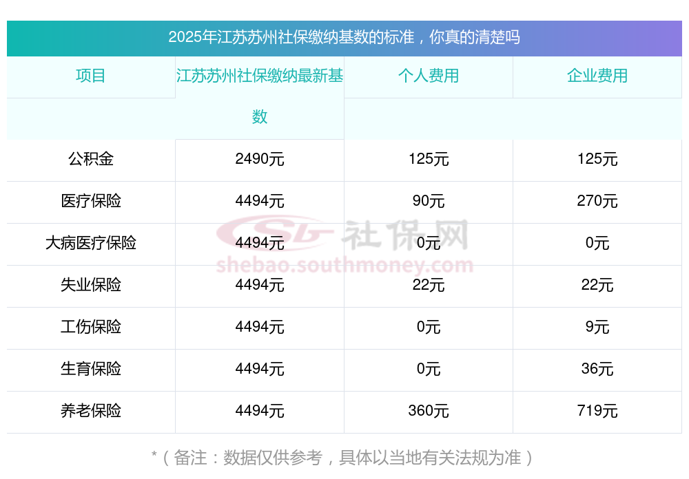 (1)据新社通小编了解到,社保缴费基数的确定主要依据职工上一年度的月平均工资,并结合当地社会平均工资的上下限(60%-300%)进行调整。 目前,江苏苏州社保缴费基数为:4494.00,个人费用约为:89.88元,企业费用约为:269.64元。
