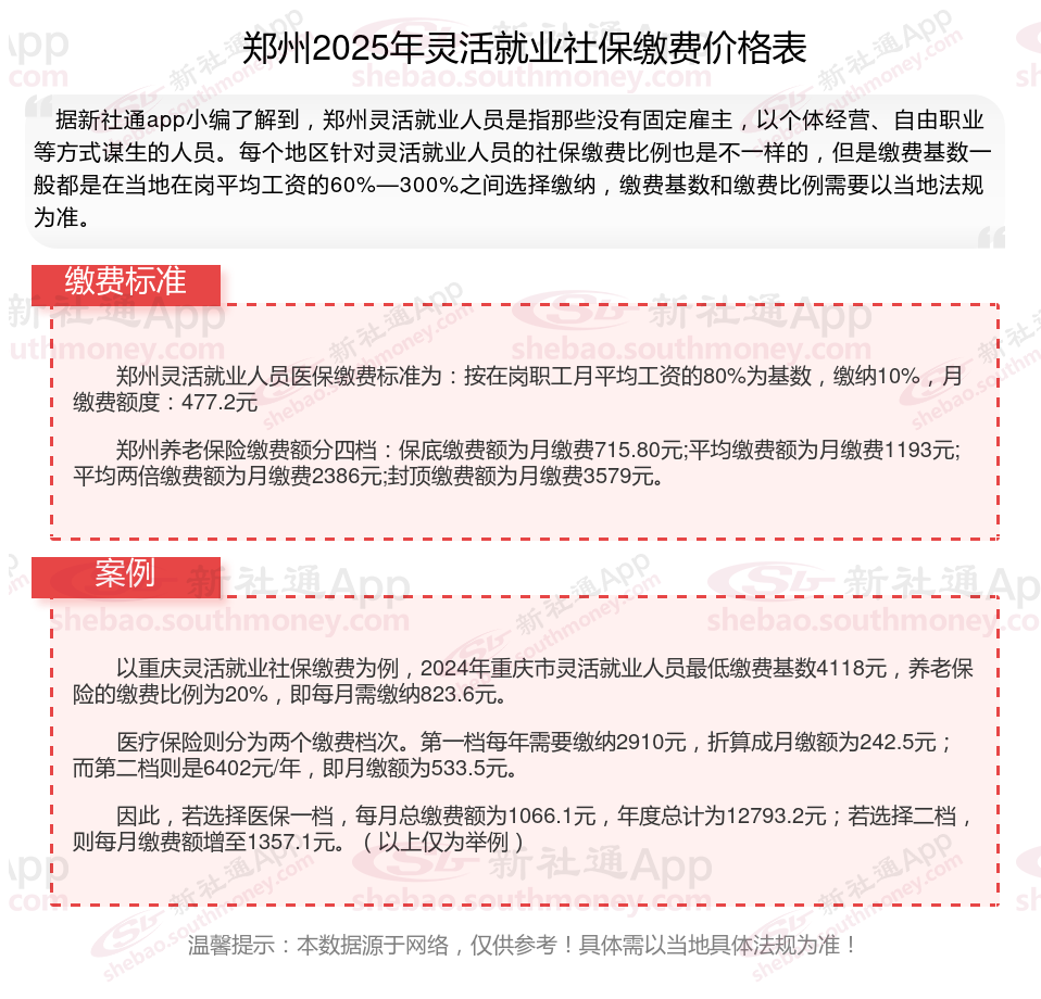 郑州灵活就业社保每月交多少钱?灵活就业社保最低缴费标准一览表(基数+比例)