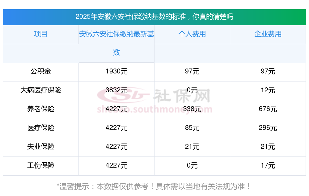 安徽六安五险一金社保扣多少钱一个月2025年? 社保缴费基数的确定主要依据职工上一年度的月平均工资,并结合当地社会平均工资的上下限(60%-300%)进行调整。