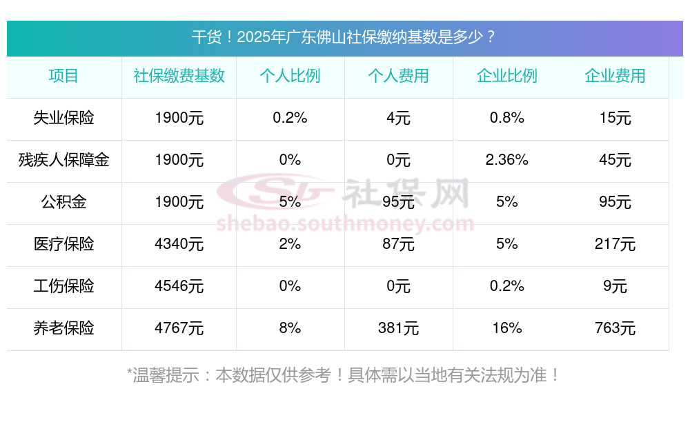 2025年广东佛山社会养老缴纳基数及比例一览表 广东佛山个人缴纳社保每月要多少钱?社保缴费数额的确定受缴费基数、缴费比例,以及当地法规在社保方面的具体法规等多种因素影响。