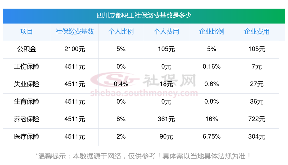 缴费基数、缴费比例以及当地根据实际情况公布的具体法规,共同构成了社保缴费金额的确定因素。那么,2024-2025年四川成都社保缴费基数公布!个人要交多少钱?如下: