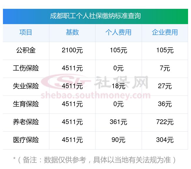 2025年五险一金指的是什么?五险一金缴纳比例(个人交多少)?下表是2024-2025年成都社保费用明细参考,新社通app-社保缴费查询工具提供的最新数据如下: