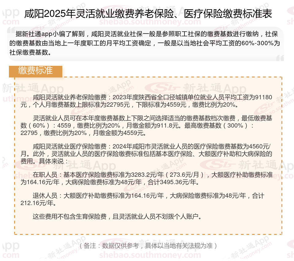 咸阳2025年灵活就业人员社保缴费标准公布