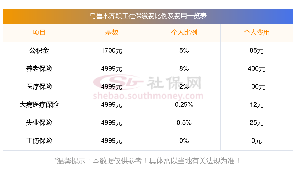 2025年乌鲁木齐社保缴费多少钱?下表是2024-2025年乌鲁木齐社保费用明细参考,新社通app-社保缴费查询工具提供的最新数据如下: