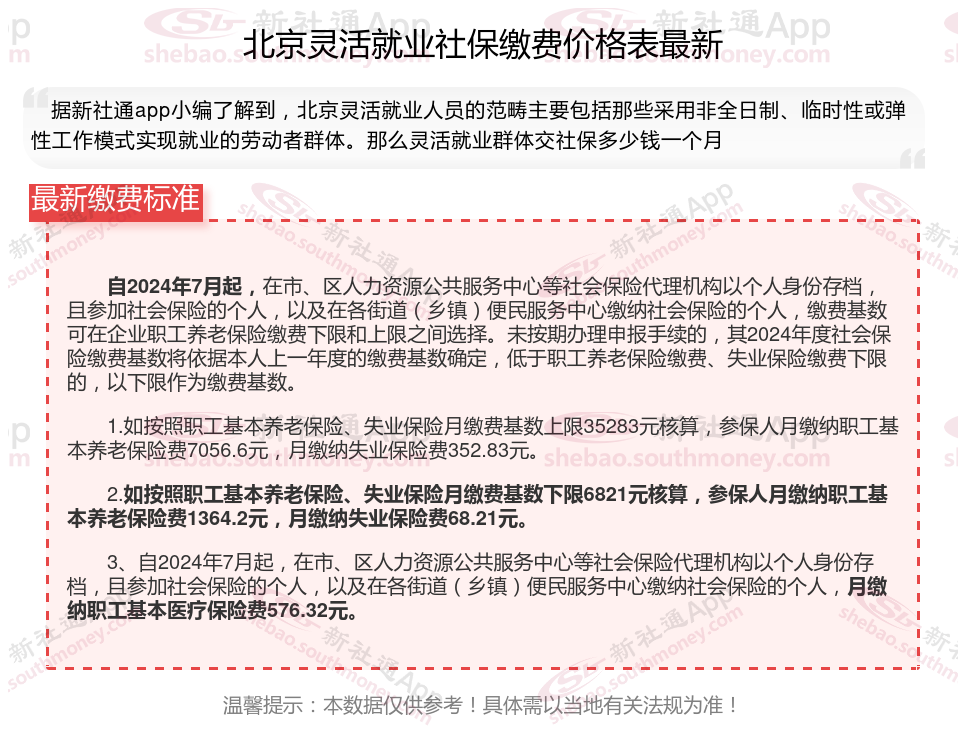 一、北京灵活就业社保缴费标准表2024年 北京灵活就业社保多少钱一个月?