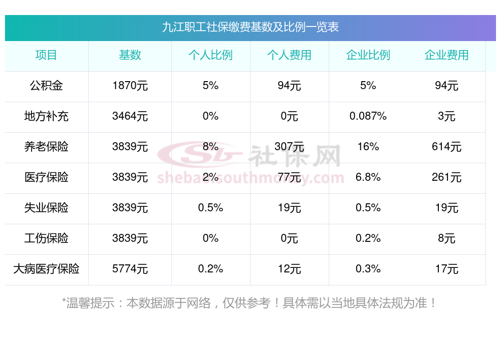 据新社通app显示,九江社保缴费基数2025年标准,(社保最低一个月要交多少钱)九江社保费用如下:
