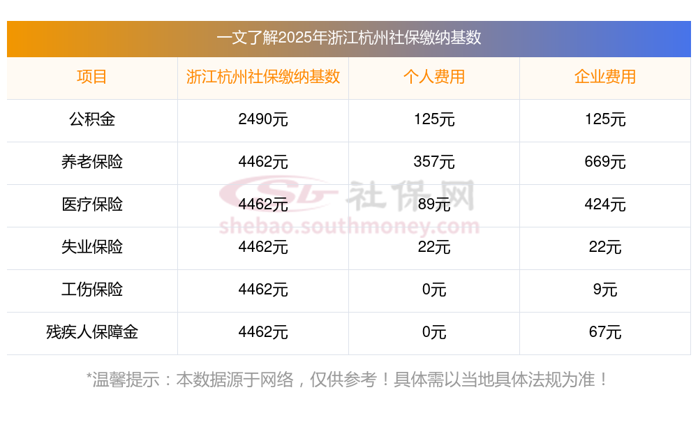 目前该浙江杭州社保缴费基数最新参考为3579.00。(数据仅供参考)